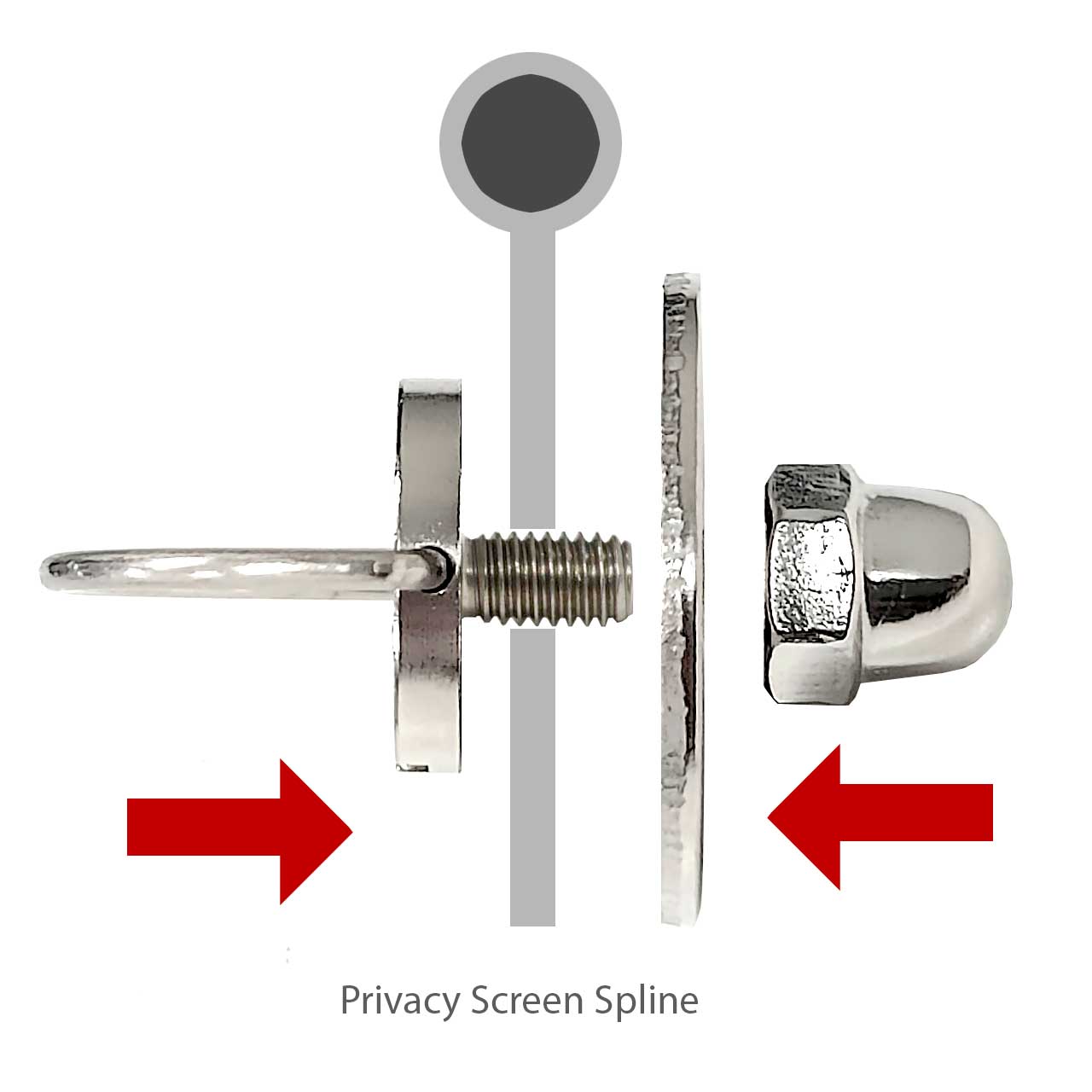- insert a ring bolt from the back side of the privacy screen through the hole