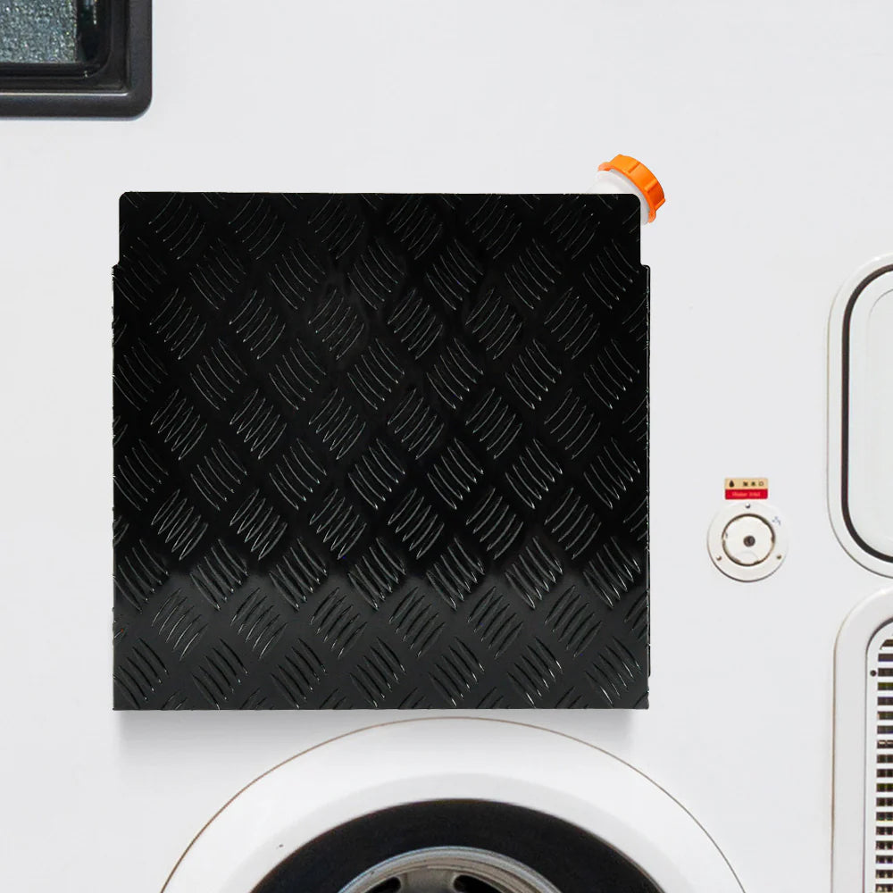 Constructed from durable 2.0mm aluminium checker plate, this Caravan Diesel Fuel Tank Protector Cover is engineered to provide robust protection for 10L and 15L diesel tanks commonly used in caravan applications. The precision-cut slotted section allows for convenient visual monitoring of fuel levels without the need for removal. Designed with 20mm mounting tabs, the cover supports straightforward installation and is compatible with both left and right-hand tank configurations.